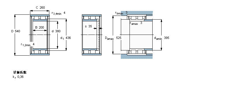 | 圓柱滾子軸承, 雙列滿裝滾子, 無密封件, 沒有載荷支承能力 | ||||||||||