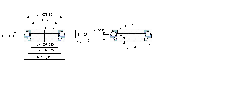 | 角接觸推力球軸承, 雙向 | |||||||||||