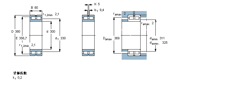 | 圓柱滾子軸承, 雙列滿裝滾子, 無密封件, 雙方向軸向負(fù)荷的擋邊 | ||||||||||