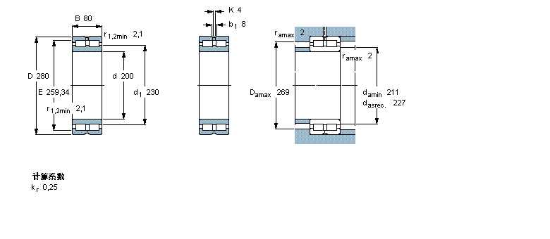| 圓柱滾子軸承, 雙列滿裝滾子, 無(wú)密封件, 雙方向軸向負(fù)荷的擋邊 | ||||||||||