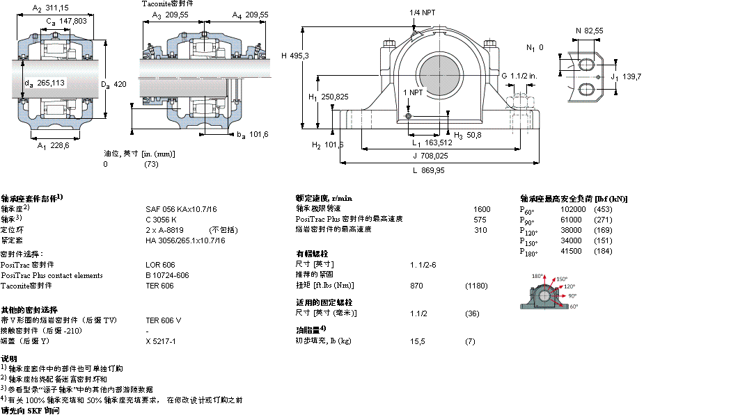 | 型號 | 基本負(fù)荷額定值, | 主要數(shù)據(jù)尺寸 | 迷宮密封件 | PosiTrac 密封件 | PosiTrac Plus密封件 | Taconite密封件 | |||||